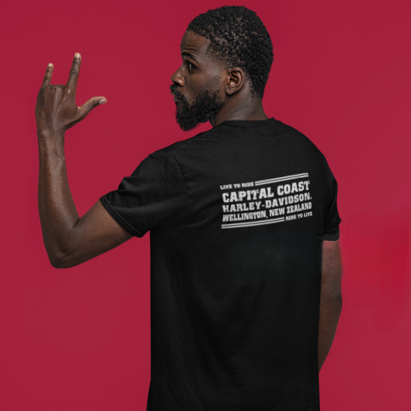 • Capital Coast Harley-Davidson back print, colours will vary to match the colour of the tee