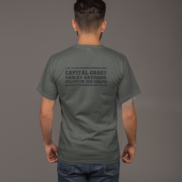 Capital Coast Harley-Davidson® Inspire S/S Tee. Soft and comfy unlike the colour code. Need a change from black, asphalt could be the one. Capital Coast Harley-Davidson back print.