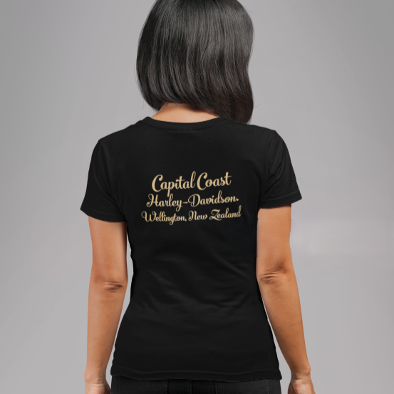 • Capital Coast Harley-Davidson back print, colours will vary to match the colour of the tee