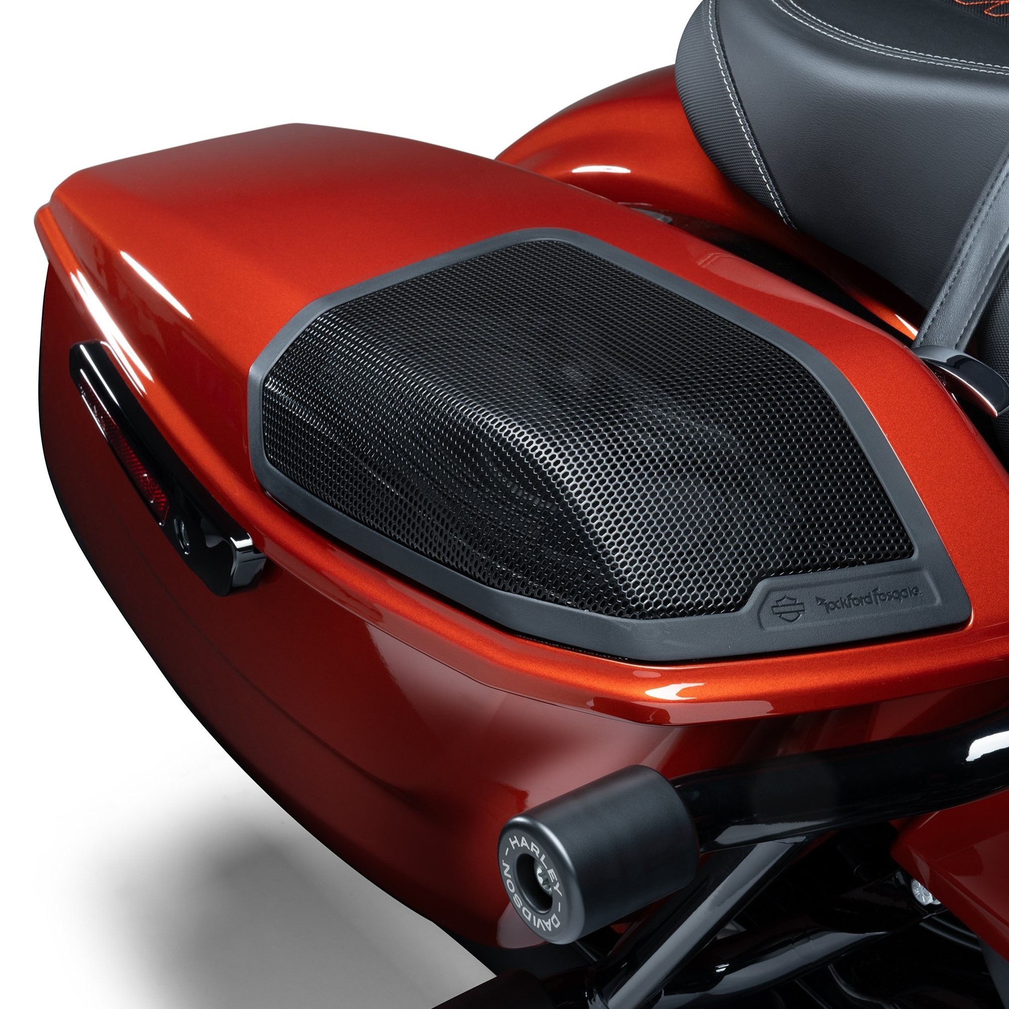 - Requires separate purchase of Harley-Davidson Audio powered by Rockford Fosgate – Saddlebag Speaker Install Kit and Harley-Davidson Audio powered by Rockford Fosgate Primary Amplifier