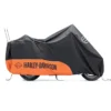 In orange & black with Harley-Davidson graphics, the weather-shielded vents in the top of the cover promote air circulation to reduce moisture build-up and minimize corrosion during short or long term storage.