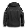 - Additional Features: Two-way zipper front. Airprene collar and throat guard for comfort. Underarm zipper vents. Reinforced elbows and shoulders. Elastic and adjustable cuffs. Zip-off bungee cord and toggle helmet-friendly hood stows in collar