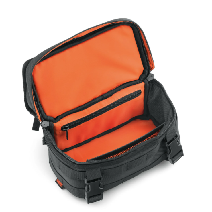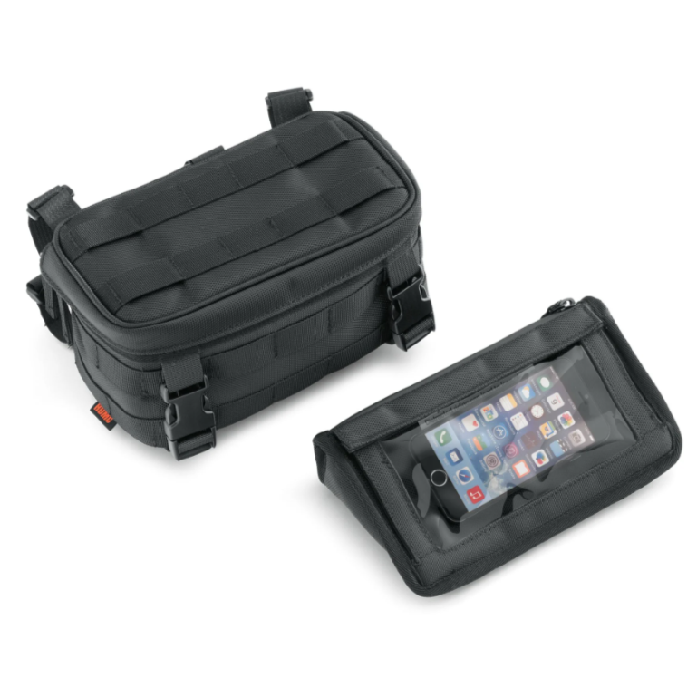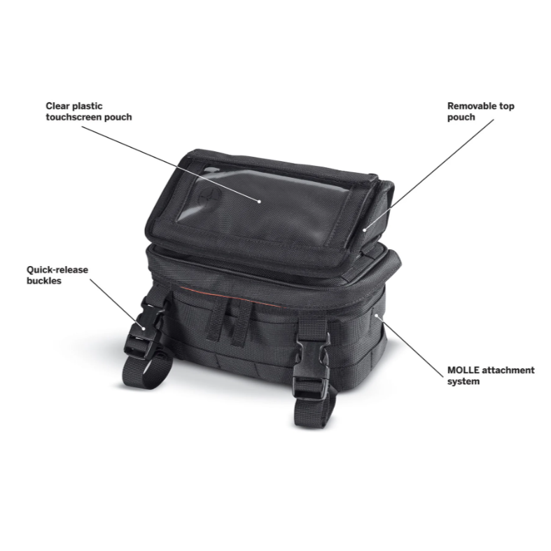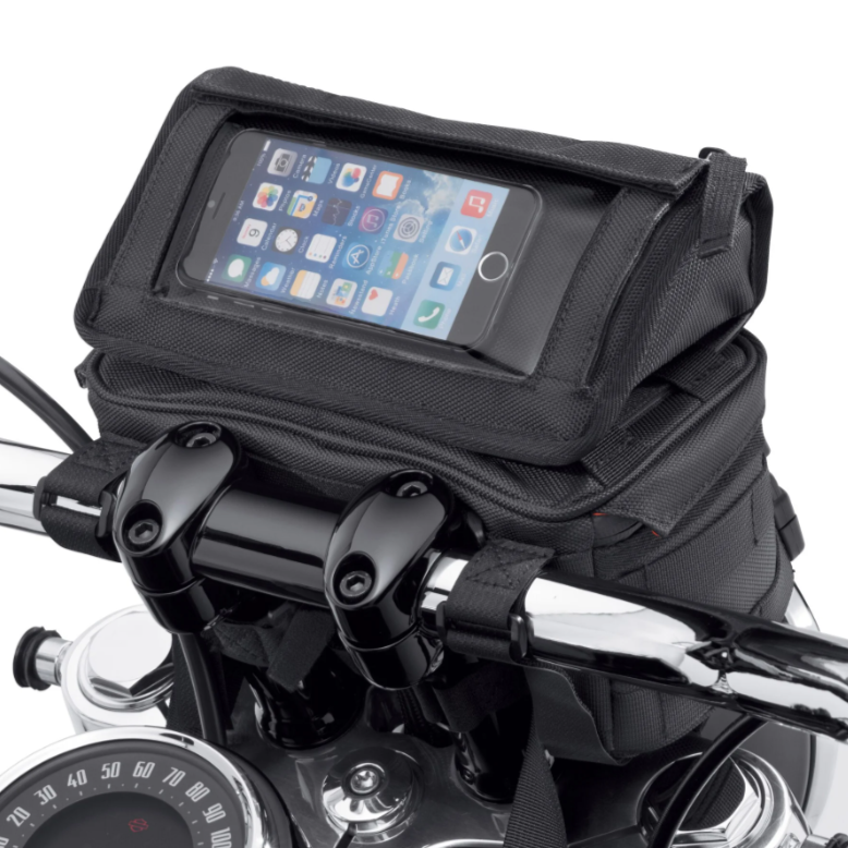 The roomy Overwatch Large Handlebar Bag is the ultimate in style and practicality. This bag features a removable top compartment with a clear plastic touchscreen pouch that is perfect for holding your phone or GPS. The top pouch also has a zippered compartment that is perfect for storing your wallet and keys. The larger main compartment features one zip and one mesh pocket for organization.