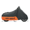 In orange & black with Harley-Davidson graphics, this breathable microfiber material promotes air circulation to reduce moisture build-up and minimize corrosion during short or long term storage.