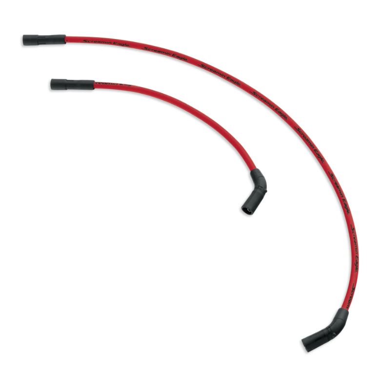 Fat 10mm plug wires add dimension and style to your ride. Screamin’ Eagle boot design and suppression core wires ensure solid connection and maximum voltage transfer between coil and plugs.