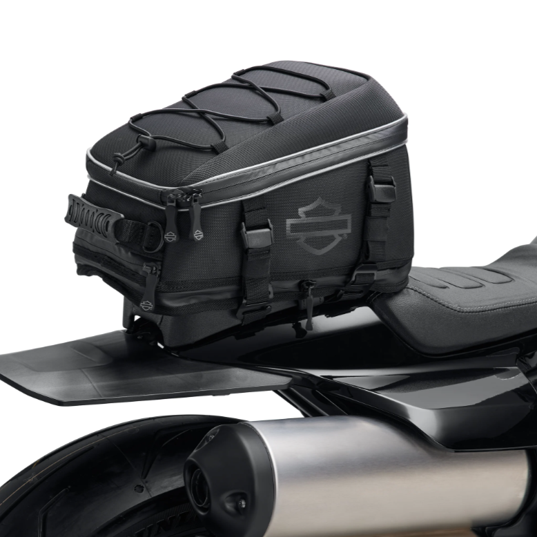 This expandable tail bag luggage is designed to fit and look great on the Sportster S model, and provides a convenient luggage option for ride essentials that is easy to install and remove.
