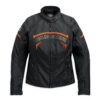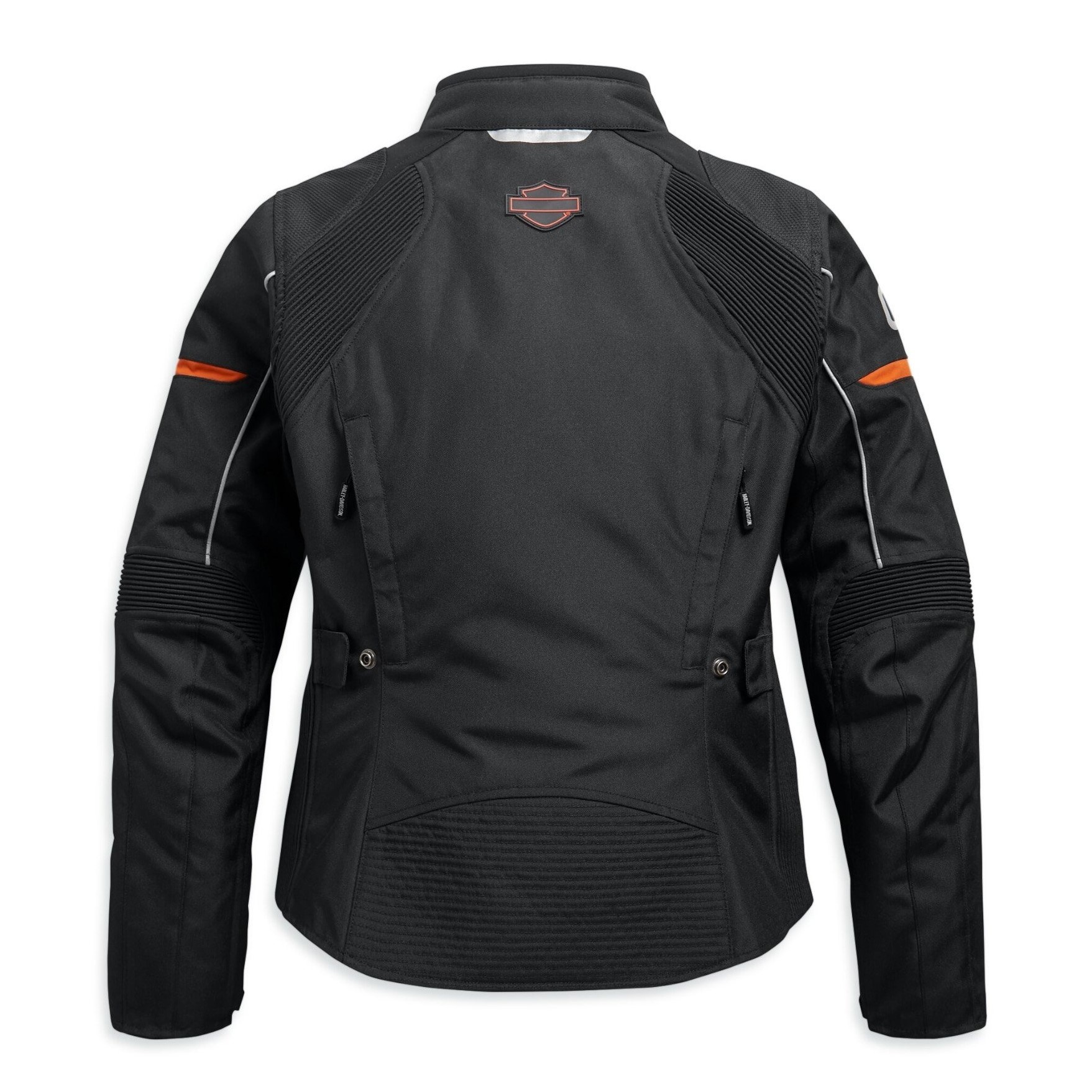 Other functionality includes: sewn-in body armour, multiple vents, and reflectivity. Adding greater versatility, a dual-liner system includes a zip-out waterproof liner with its very own warmth liner. Iconic graphics and a bold pop of orange injects this women’s textile motorcycle jacket with colour and undeniable attitude.